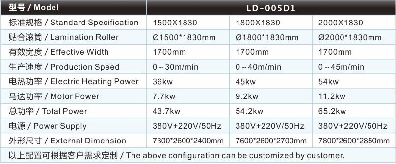 | PPU鞋墊復(fù)合機(jī)/貼合機(jī)-雙膠槽水膠復(fù)合機(jī)/貼合機(jī)LD-005D1主要技術(shù)參數(shù) / Major technical parameters |