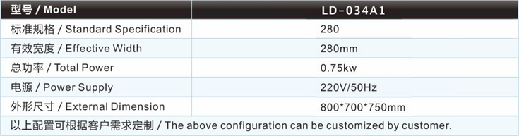 小型上膠機LD-034A1主要技術(shù)參數(shù) / Major technical parameters