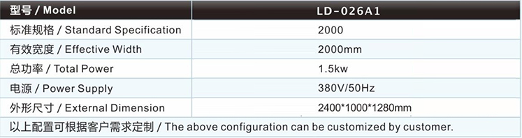 | 斜裁卷布機(定速型)LD-026A1主要技術(shù)參數(shù) / Major technical parameters |