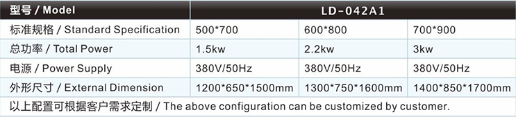 | 單桶油糊攪拌機LD-042A1主要技術(shù)參數(shù) / Major technical parameters |