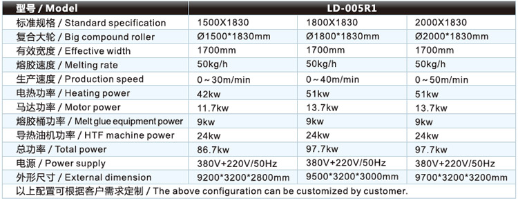 | 熱熔膠復合機/貼合機-固體顆粒熱熔膠復合機/貼合機LD-005R1 的主要技術(shù)參數(shù) / Major technical parameters |