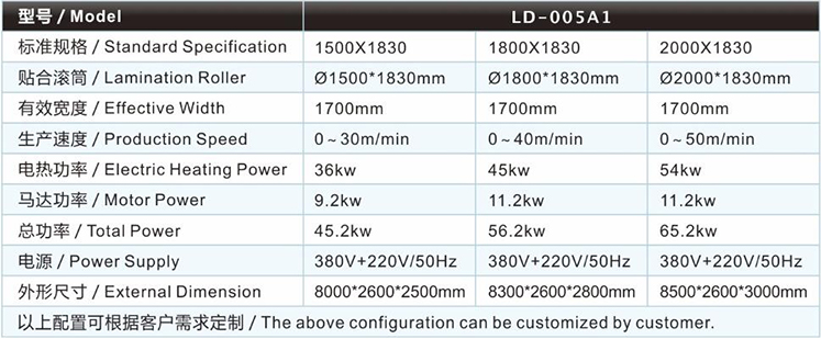 | 球革復(fù)合機(jī)/貼合機(jī)-EVA強(qiáng)力膠復(fù)合機(jī)/貼合機(jī)LD-005A1的主要技術(shù)參數(shù) / Major technical parameters |