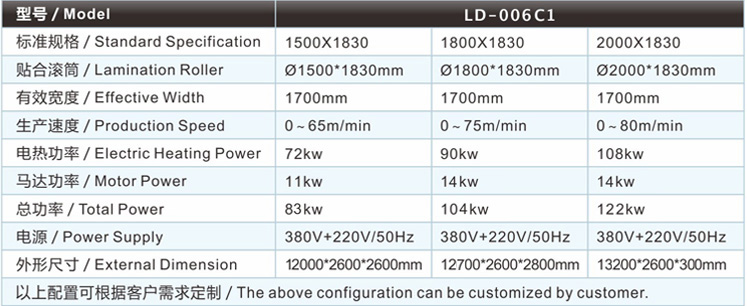 | 鞋材復合機/貼合機-臥式雙輪雙網(wǎng)雙槽水膠高速泡棉復合機/貼合機LD-006C1的主要技術參數(shù) / Major technical parameters |