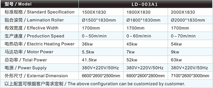 | 水膠復(fù)合機(jī)/貼合機(jī)-立式單槽水膠復(fù)合機(jī)/貼合機(jī)LD-003A1主要技術(shù)參數(shù) / Major technical parameters |