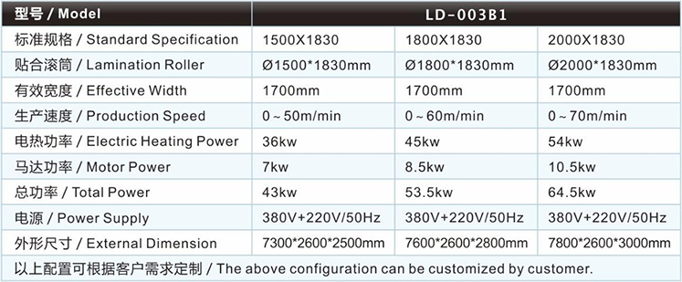 | 燈飾復(fù)合機(jī)/貼合機(jī)-立式雙槽水膠復(fù)合機(jī)/貼合機(jī)LD-003B1主要技術(shù)參數(shù) / Major technical parameters |